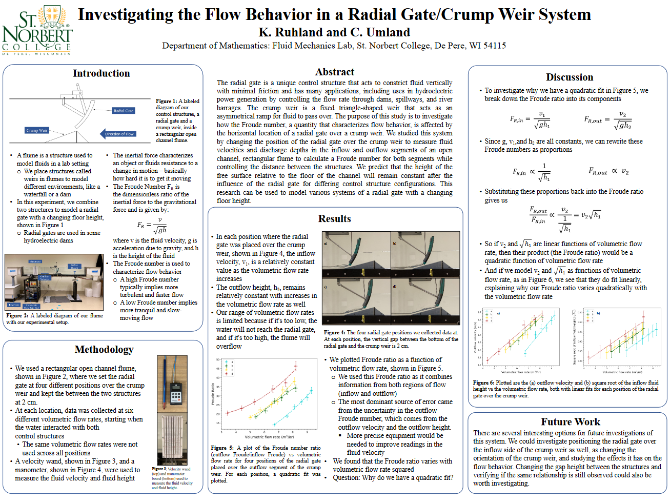 The radial gate is a unique control structure that acts to constrict fluid vertically with minimal friction and has many applications, including uses in hydroelectric power generation by controlling the flow rate through dams, spillways, and river barrages. The crump weir is a fixed triangle-shaped weir that acts as an asymmetrical ramp for fluid to pass over. The purpose of this study is to investigate how the Froude number, a quantity that characterizes flow behavior, is affected by the horizontal location of a radial gate over a crump weir. We studied this system by changing the position of the radial gate over the crump weir to measure fluid velocities and discharge depths in the inflow and outflow segments of an open channel, rectangular flume to calculate a Froude number for both segments while controlling the distance between the structures. We predict that the height of the free surface relative to the floor of the channel will remain constant after the influence of the radial gate for differing control structure configurations. This research can be used to model various systems of a radial gate with a changing floor height.