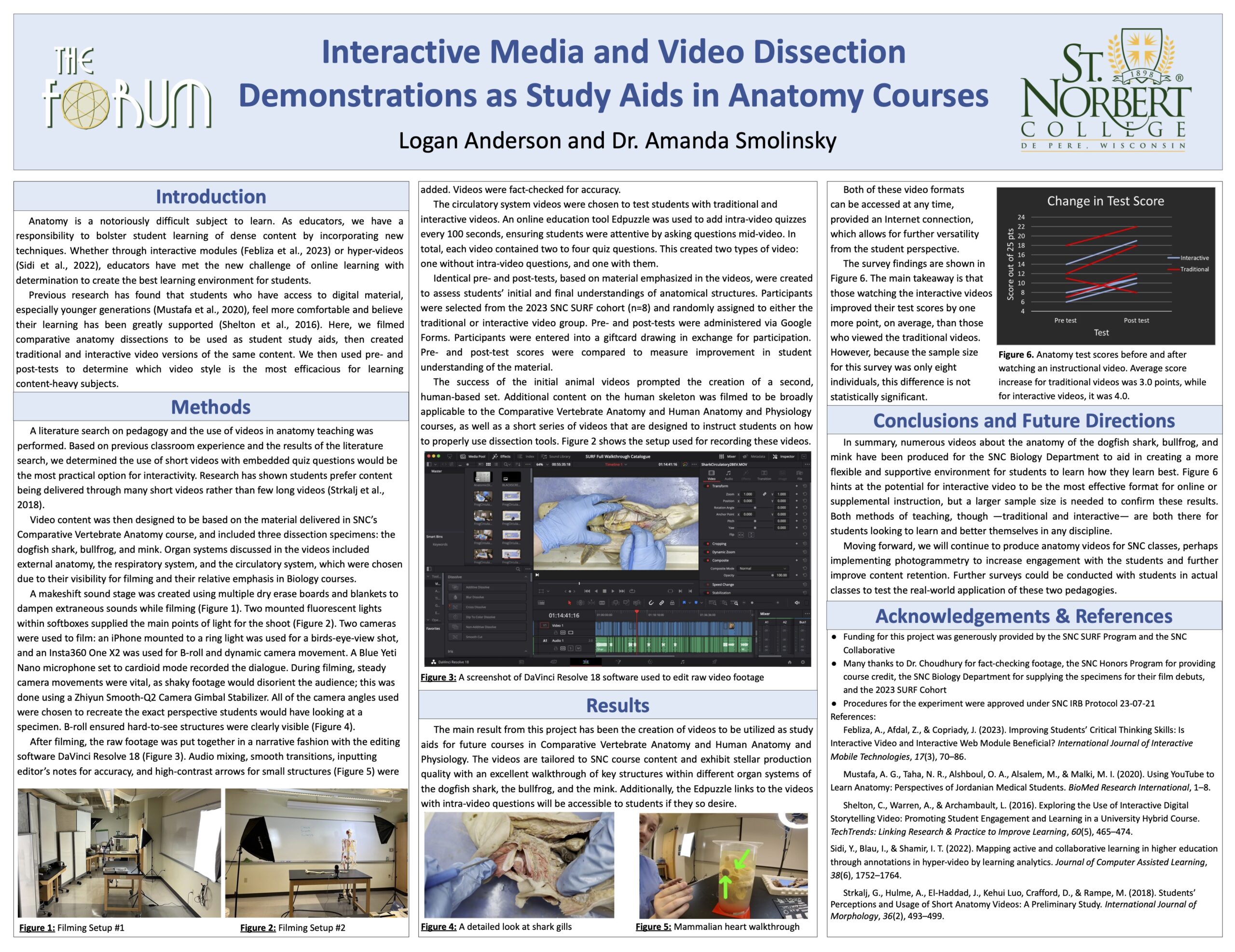 Anatomy is a notoriously difficult subject to learn. As educators, it is our responsibility to actively bolster students as they work through tough material. Lecture-based education is the traditional route for teaching, but with the increased availability of online resources, educators have the opportunity to adapt learning tools to better facilitate student learning, especially for difficult concepts. My research compares the traditional, lecture-style delivery mode with an interactive version of that same content for anatomy instruction. We are looking to determine which mode of instruction is the most efficacious for students learning a content-heavy subject. Previous research found that, for students of varying experience levels with the sciences, those who viewed interactive videos performed better on post-quizzes when compared to students who viewed lecture-style videos. Each student was presented with a recorded walkthrough of the shark, frog, and mink circulatory systems, but only half of the participants were given the videos with interactive questions within them. Pre- and post-quizzes determined existing knowledge of the material for this content, and how they improved after viewing the videos, respectively. Due to a small sample size, this difference is not significant. This semester, we are producing videos of mink musculature and the skeletal system for use in Anatomy and Histology, and Comparative Vertebrate Anatomy. We aim to apply a similar method of study to more students in these courses once these videos are completed. Plus, both versions of the video will be available for students in those classes as study resources.